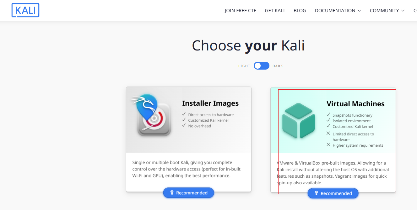 2.点开kail官网下载kail的vmwork版本,kail的网址:https://www.kali.org/