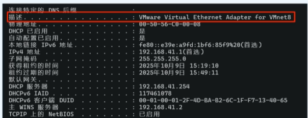 ipconfig /all看到有vmnet1和vmnet8即可;